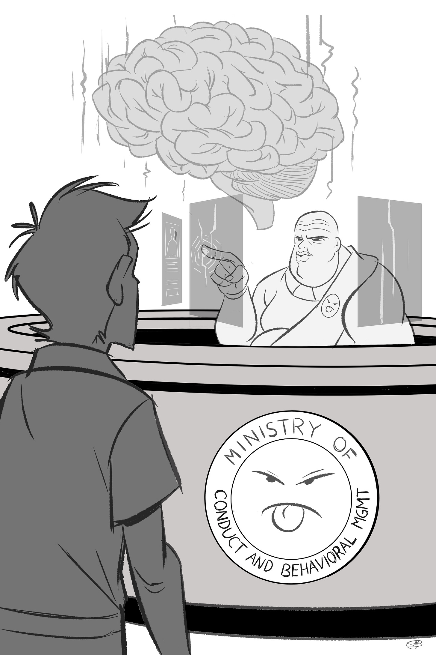 The Coordinator composed itself and resumed. “You missed a spot on the deep scan, an omission that calls your faculties into question. Even one civilian is enough. Anyone can be a potential criminal, C2513-08. Anyone!” The post-human balled its fists, glowering straight into the eyes of its employee. “The smallest mental infraction can resurface at any point in time, raising the potential for transgression. Given your long-standing position in this reputed institution, you should have already known that!”
